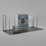 Description:20x20 Island Kit featuring a central expanded storage room, monitor brackets, and eight Premium LED Stem lights. Kit includes printed graphics. |